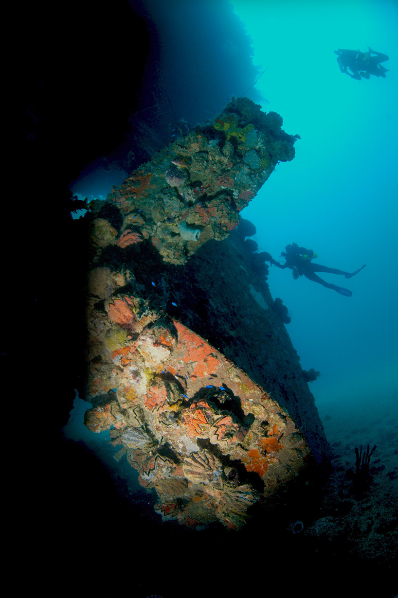 Below: A diver poses behind the Fugikawa’s massive single prop. |
