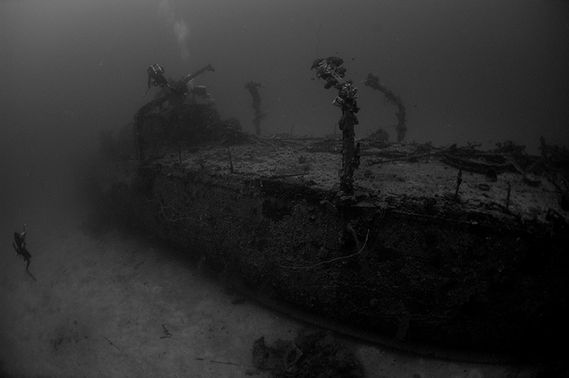Above: CCR divers inspect the stern section of the Oite. Max depth 202 feet.