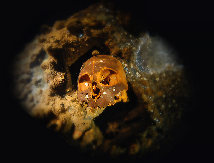 Above: Signs of the sacrifices of war, a Japanese sailor’s skull and
