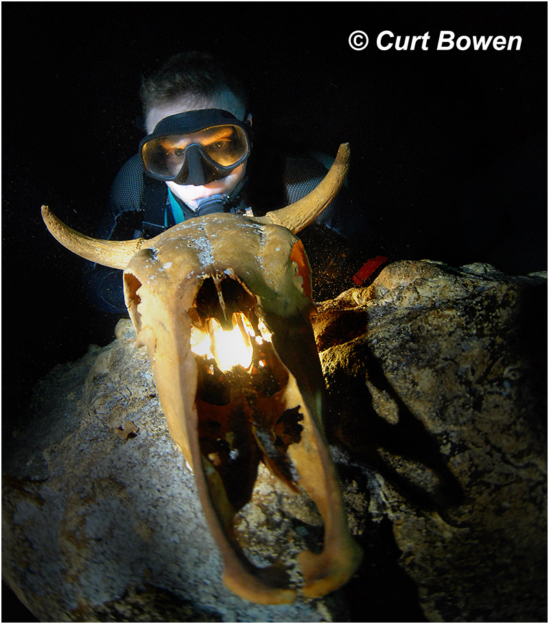 Below: Multiple animal skeletons where also discovered within the Cenote such as cattle, horses, and extinct Pleistocene animal bones. |