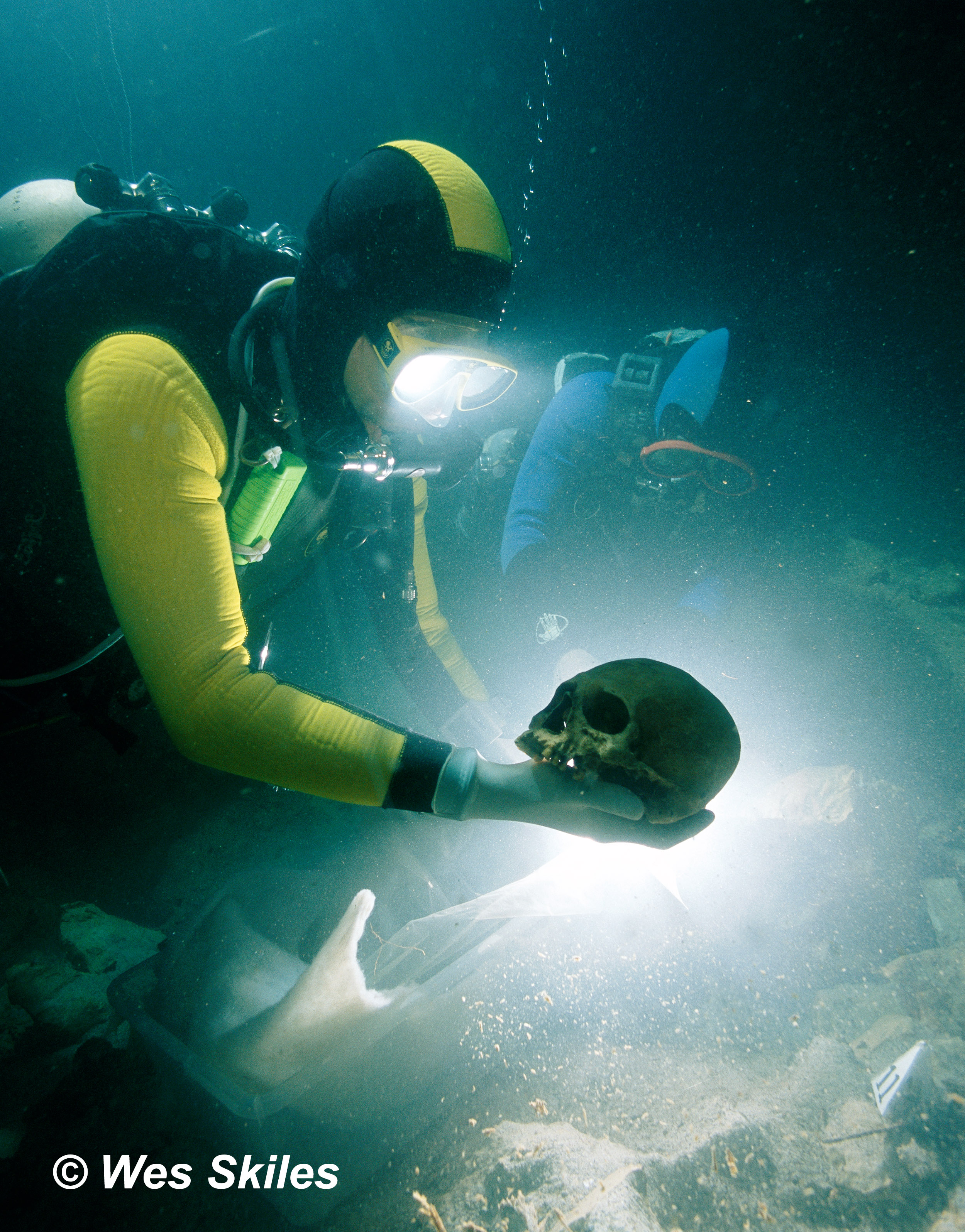 Above: Diver excavates the ancient remains of a human skeleton from the Well of Time.