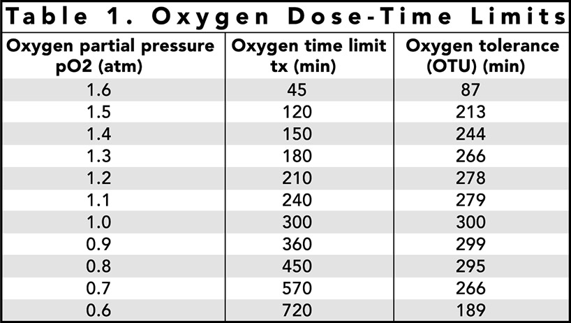 Note the severe reduction in multiple oxygen exposure time at 1.6 atm in Table 2. For this reason, technical divers generally restrict mixed gas diving exposures to PO 2 < 1:6 atm through- out any sequence of dives.