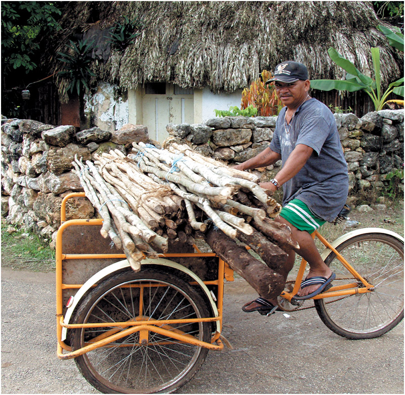 Below: A "Libre Nacho" Tricycle is the common form of transportation in the Yucatan. Often used to transport people, food or fire wood. For the right amount of money, you can catch a ride through the village. |