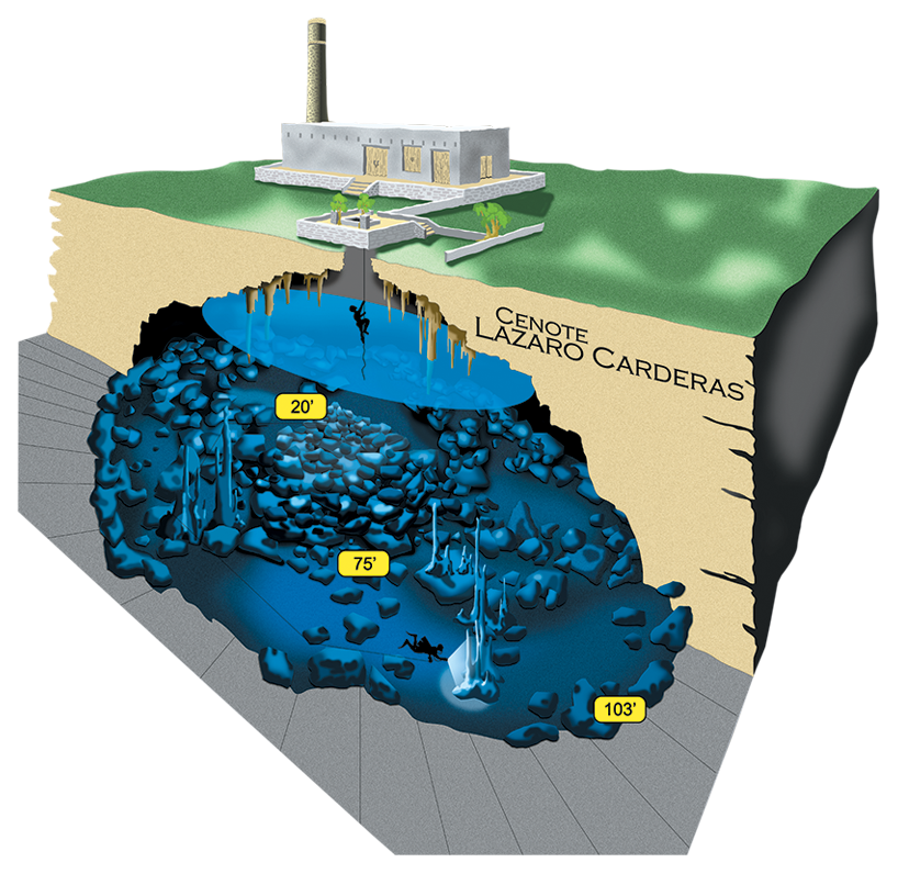 Below: Artist’s rendition of Cenote Lazaro Carderas |