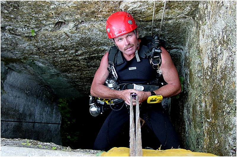 Below: On Rope, Rusty Farst drops through a farmers well and into another pit. |