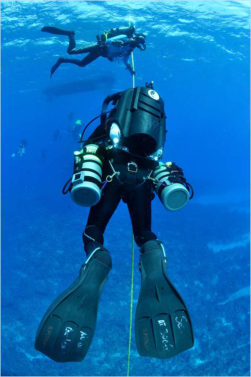 Stopping to complete the remaining 60 minutes of required decompression, reflecting on the notion that you are only a temporary visitor in this deep blue abyss. While the smallest of creatures living in every crack, gap, pit, and crevice beside you keep you amused. The well-orchestrated performance of fish darting across the reef, alongside the meandering trails of the lingering conch shells that make nonsensical patterns in the sand as they search for food, will evoke a sense of admiration for their daily journeys.