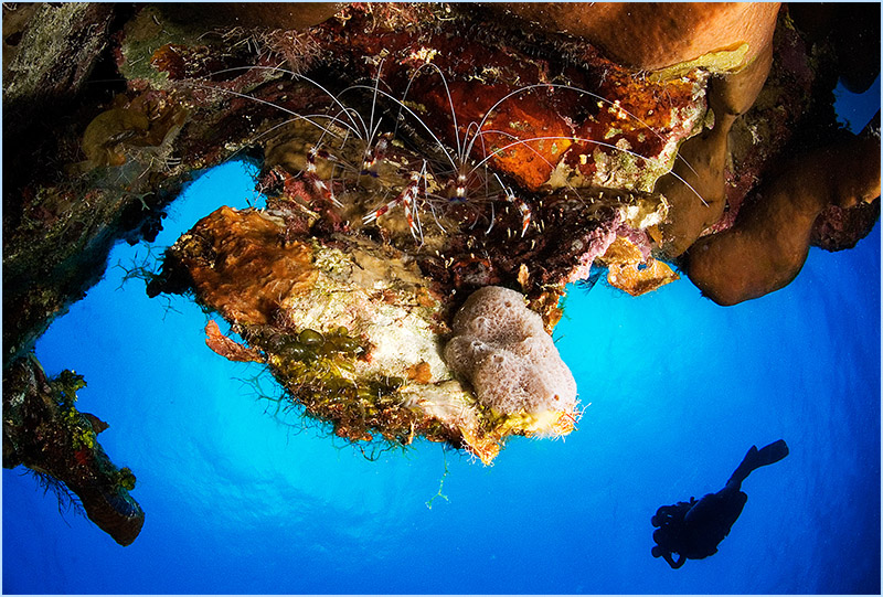 From small crabs, invisible ghost shrimp, funny horned cowfish, and bobbing little brown pufferfish, the variety of life is virtually endless and the opportunity to witness this aquatic world at a level only a few have the privilege to see is priceless. The count down on your dive computer shows you are safe to return to the surface, bringing an ending to a remarkable dive adventure on the Cayman wall.