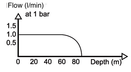 Lowering the IP, to decrease the mass flow to mach the flow to a lower metabolic consumption, will also decrease the maximum operation depth of the unit: Every bar the IP is decreased, the maximum recommended operation depth decreases with 10m.