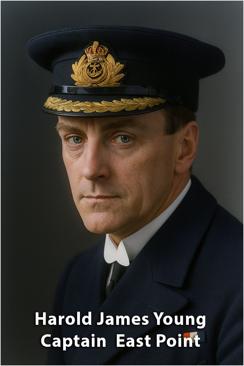 Aboard the East Point, a 5,000-ton tramp running light out of Bergen, the evening was unnervingly calm. Captain Harold James Young sat in the officers’ mess, a battered mug of strong Assam warming his hands. The smell of coal dust and salt air clung to his jacket. Tall, wiry, with a face weathered well past his thirty-two years, he had spent most of the war carrying coal and foodstuffs between neutral Norway and Britain.