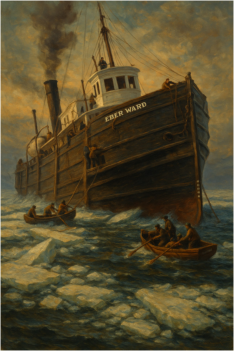 On April 20, 1909, the Eber Ward departed from Milwaukee, carrying a cargo of corn bound for Port Huron, Michigan. The voyage was early in the shipping season, and the crew of 14, led by Captain Tim LeMay, knew they would likely encounter lingering ice in the upper lakes, especially in the Straits of Mackinac—a notorious bottleneck between Lake Michigan and Lake Huron.