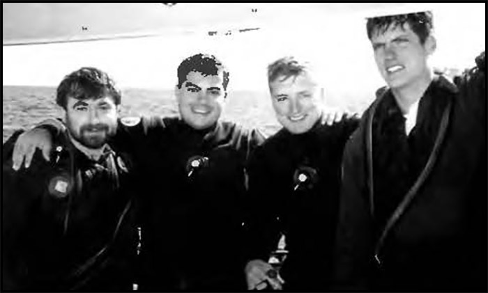 The Fitzgerald deep team and in-water support divers celebrate after the dive.