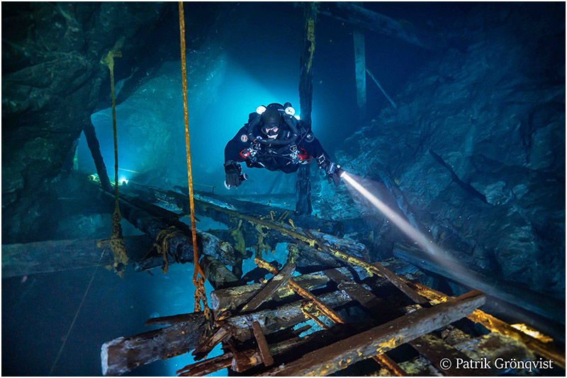 The wrecks of the Gulf of Finland quickly became his focus. Cold, dark, and historically rich, they offered endless exploration—but also limitations. Winter ice made access unpredictable, pushing him inland and underground. Mine diving became a natural extension of wreck exploration, and with it came a steady progression toward more advanced and technical forms of diving.
