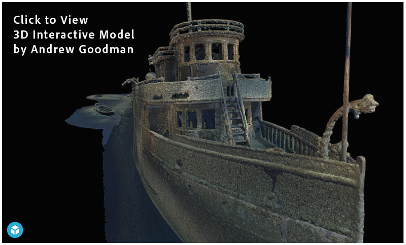 Apart from the collapsed stern, the wreck is mostly intact. It is the very definition of a “Hollywood wreck,” sitting upright in 210 ft (64 m) of water off Griffith Island in Georgian Bay, Ontario (Lake Huron). Its modest depth makes it accessible to normoxic trimix-trained technical divers who are comfortable in cold water, while still allowing ample bottom time to explore.