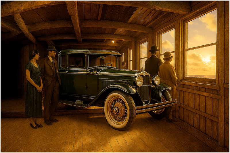 To the side, a glistening 1927 Chevrolet AA Capitol Coupe stood out against the grit of the working pier—Don Wallace’s pride and new indulgence, purchased only days before. Crates and hay bales were shifted and reshuffled to make room for both cattle and car in the ship’s hold, slowing the morning even further.