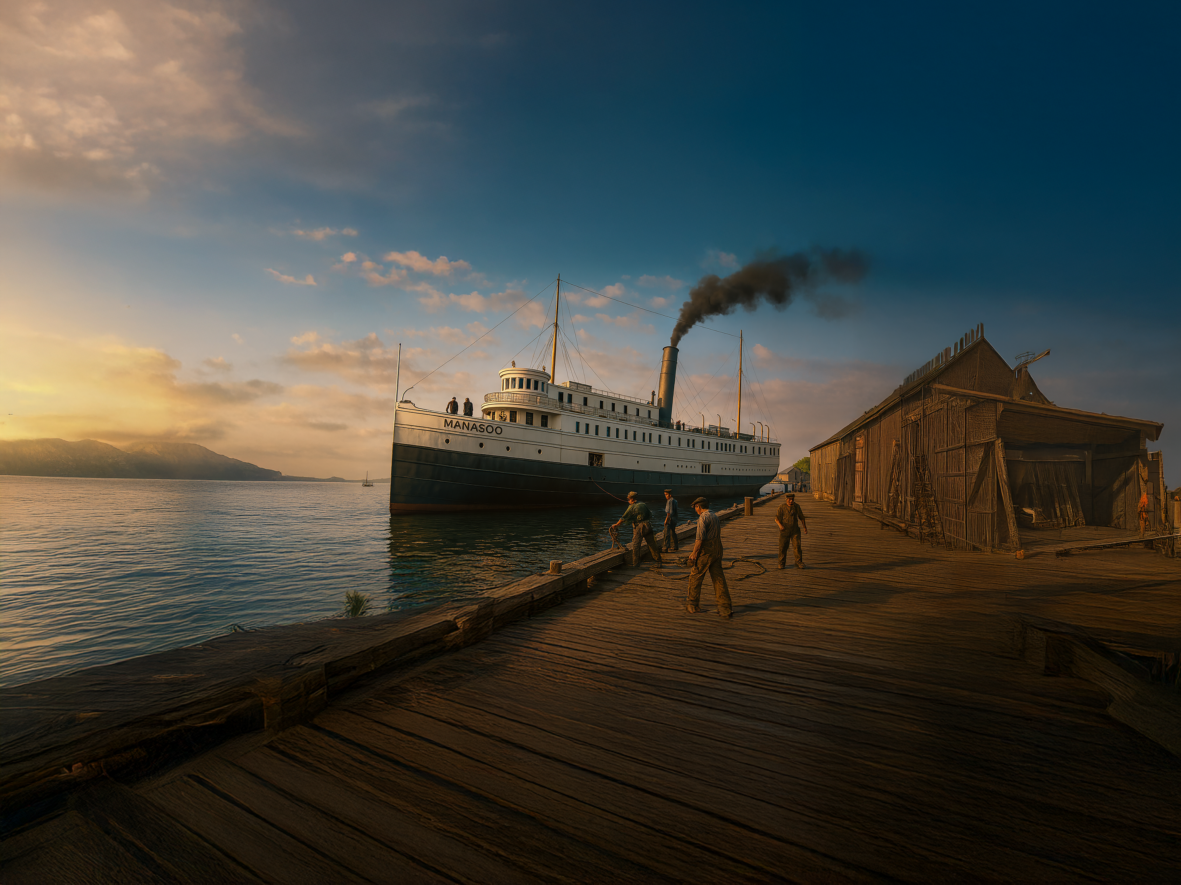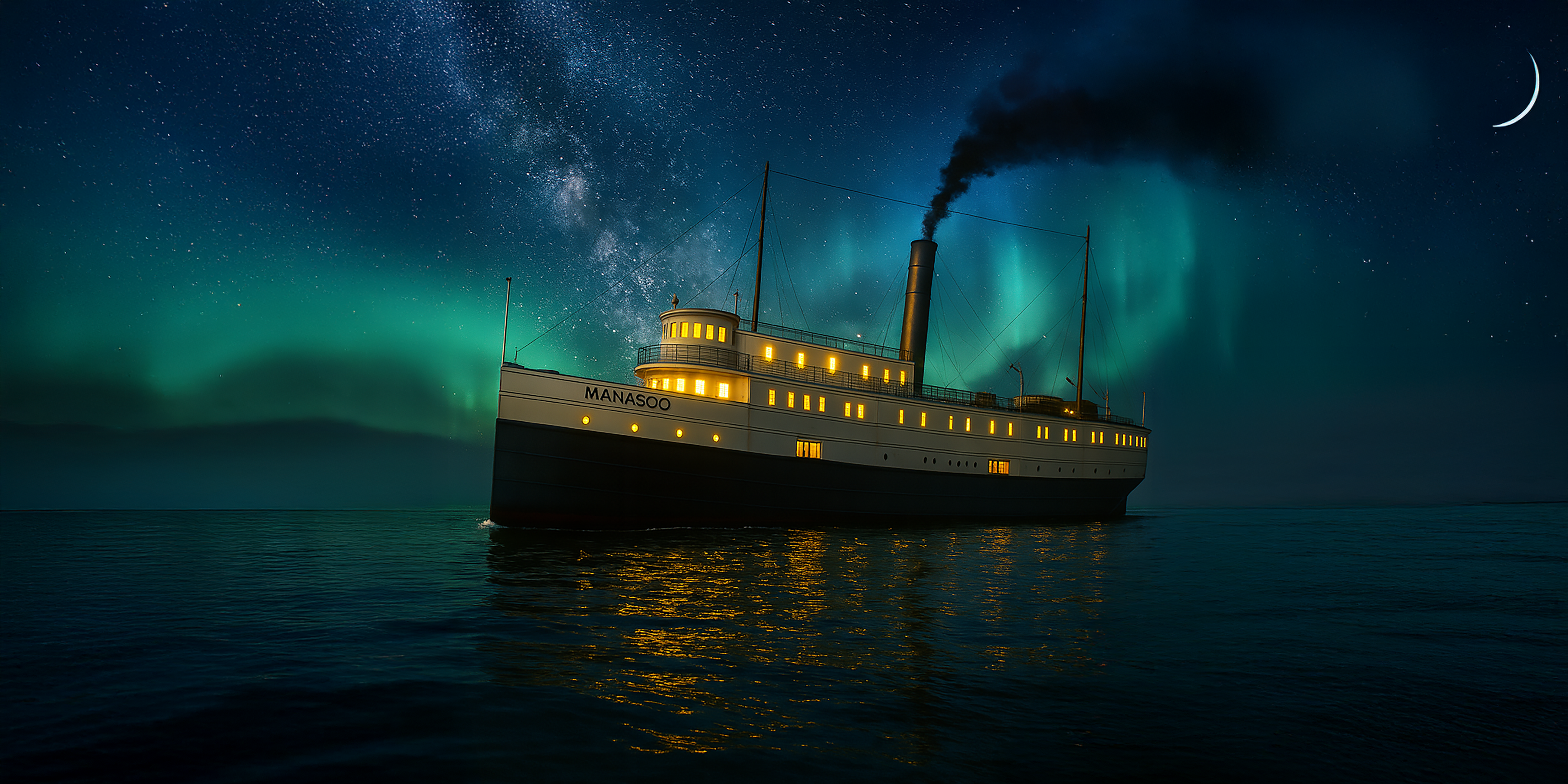 At 11 p.m., the SS Manasoo finally stirred to life. Lines were cast off the dock, coiled and hauled aboard. The steamer’s whistle bellowed across Manitowaning harbor, scattering gulls into the night air. Her propellers churned the black water as the vessel eased into the channel, hull heavy with the weight of cattle, machinery, and one gleaming Chevrolet coupe secured below.