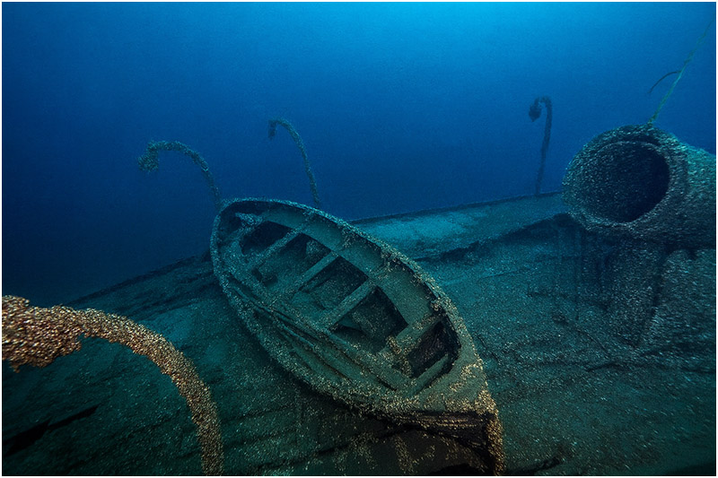 The lifeboat on the deck and another lying off the starboard side are grim reminders of the tragedy that occurred and the lives lost. Sixteen people perished in the wreck, with only five of the 21 aboard surviving.