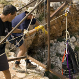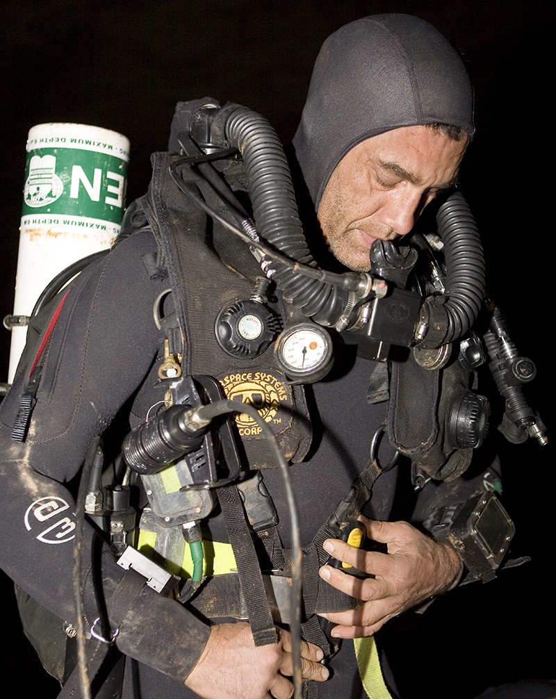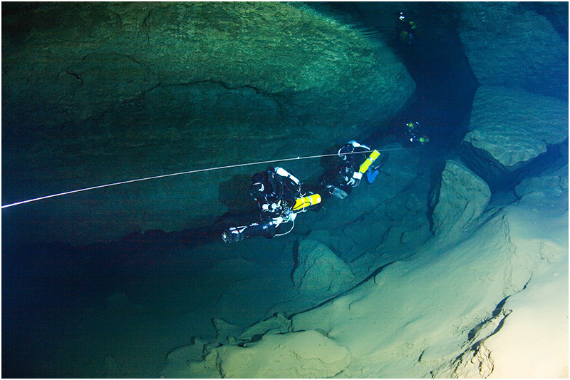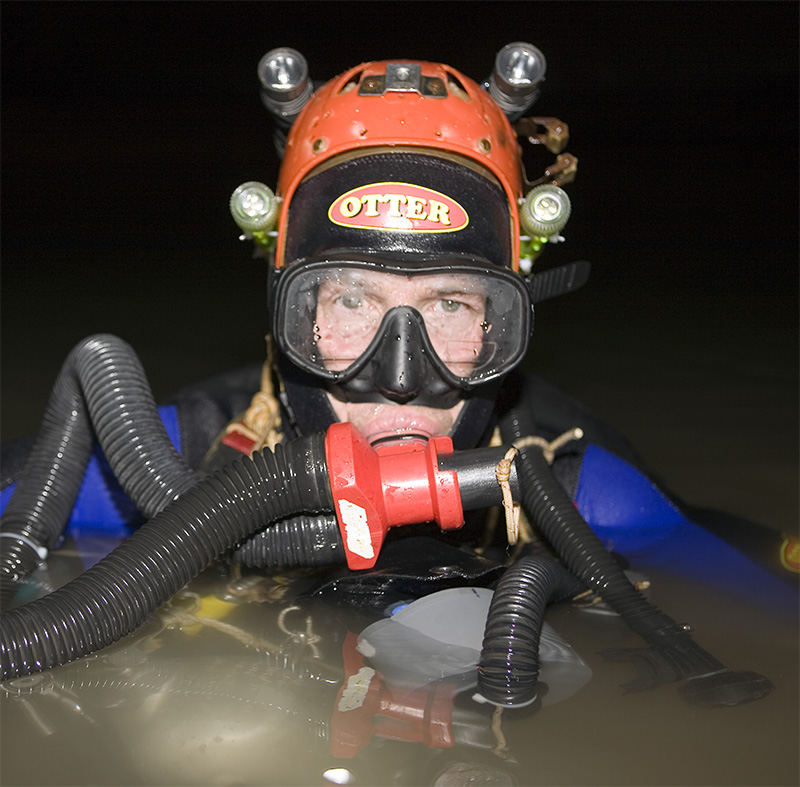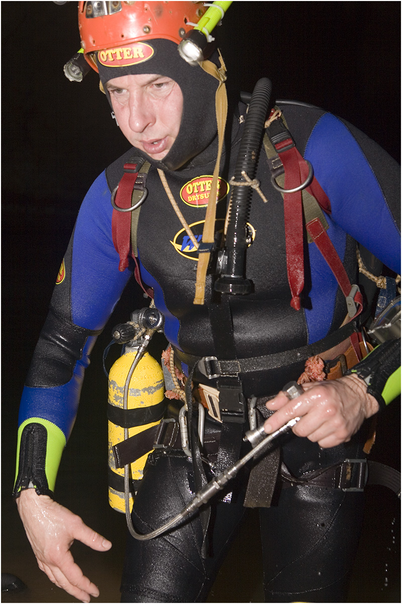 The latest man to take up the challenge of exploring the far reaches of the cave is Perth based Australian diver Dr Craig Challen. In 2008 Challen reached a new point after laying an additional 100m of line beyond his predecessor Chris Brown. Challen found himself in a very low bedding plain, against the flow of water and in little, if any, visibility. Forced to retreat due to low gas levels, he has returned to see if he can push on further past his 2008 point. With him to also challenge the far reaches is Dr Richard Harris, an Adelaide based technical diver who holds the record for the deepest dive in Australia and New Zealand. After both men have had their attempt, well-known cave diver Rick Stanton from the UK will make his inspection at the far end. Each of these explorers will make a separate attempt on different days; the nature of the cave suggests there is only room down there for one man at a time!