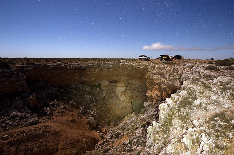 Looking at the entrance to Cocklebiddy, it’s obvious to see that this cave, as with many of the caves on the Nullabour, is nothing but a surface collapse at one point in the cave’s length. Basically, the cave created below, at some point in time, became too large to support the rock that remained above and hence collapsed in on itself, opening up the cave as we know it now. There is a theory that there is a southern passage, but no one has yet found a way into it, therefore the explorers of today concentrate on exploration upstream. The cave was formed some ten million years ago, and it’s only due to the fact that at one point in its length a collapse occurred that we are aware of its existence. Quite possibly, there are other caves under the Nullabour that are even bigger than Cocklebiddy that we are just unaware of because they simply have not collapsed.