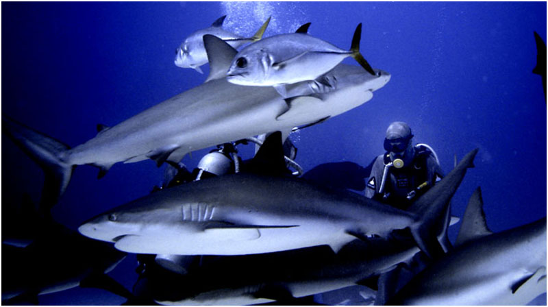 At one point Michael looks up and says, Am I really going to go down and feed sharks in the open ocean.