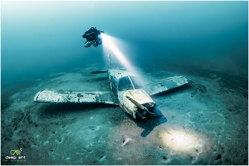 Below: Plane wreck at 53m/173ft in the open-pit mine of Hemmoor in northwestern Germany.