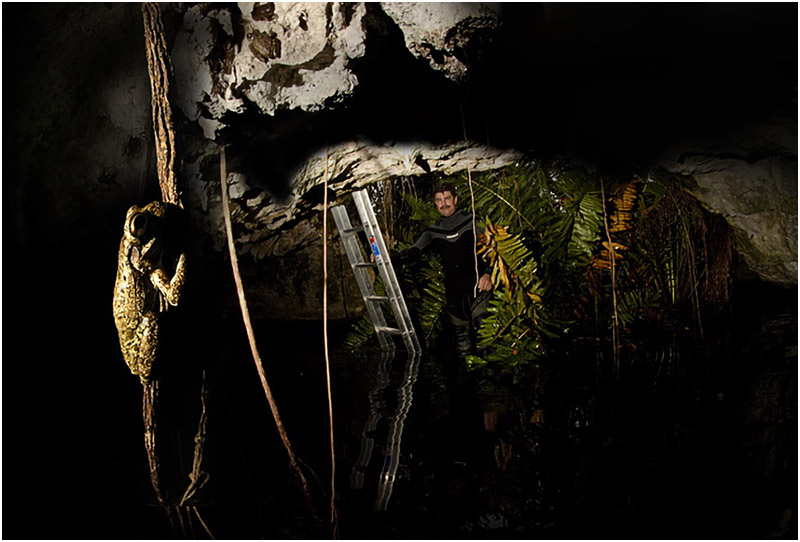 Deeper into the caves, the web of passages disperses the velocity of the currents. The caves transition from psychedelic, sponge-covered walls to tranquil, decorated rooms where cave-adapted fish and crustaceans rule. New species of crustaceans are found in these systems on a routine basis, making Bahamian caves virtual treasure-troves of new life yet to be discovered.