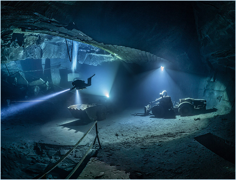 Using strong video lights (bigblue vl 65000 P and similar), I have intensified taking photos in local slate mines. My new Sony A7c with its full frame sensor makes previously unattainable low light scenarios possible with remarkably low picture noise. With this amazing camera, I can capture the lights and deep shadows in these overhead environments. My desire is to capture these historical sites and the extreme conditions the men who worked in them had to face.