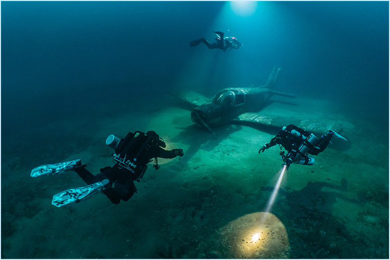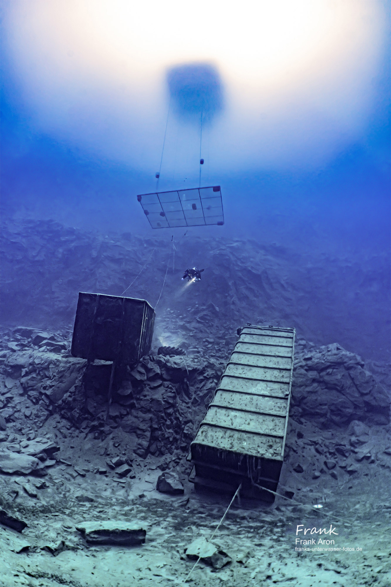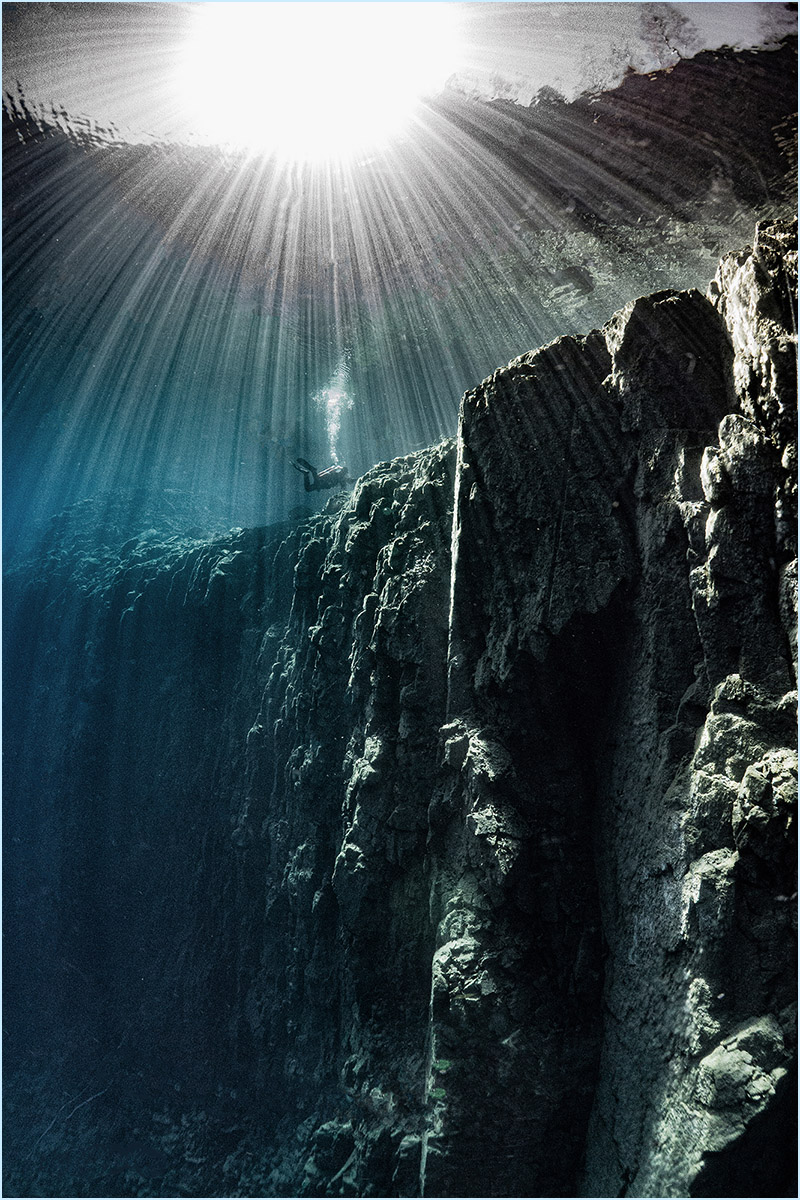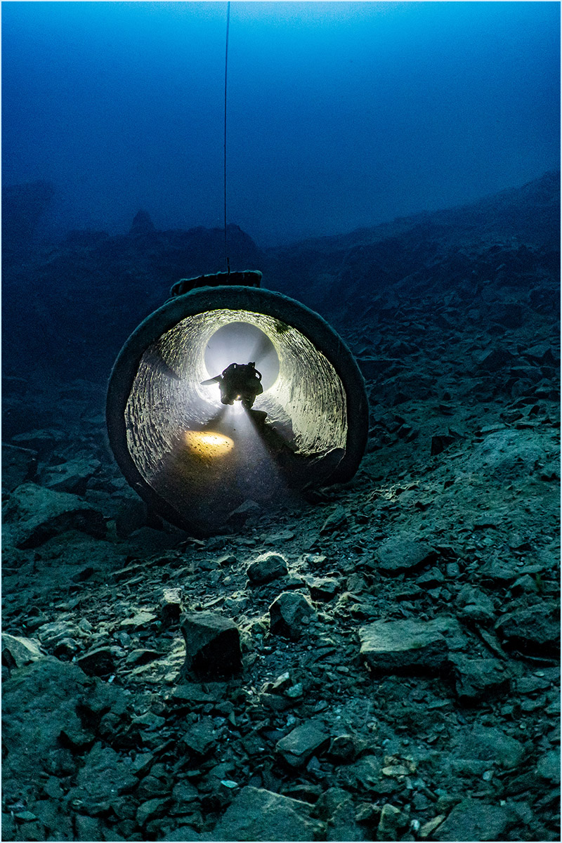 With a small camera system, I became involved with underwater photography in the early 1990s. The fantastic visibility and the impressive scenery of the walls and structures in the „See im Berg“ made me intensifying my photography ambitions. The Sunlight beams and long shadows can create spectacular impressions under water, so I kept this aspect in focus. Over the next several years, with the help of my sister, who is an educated photographer, I improved my photography skills.