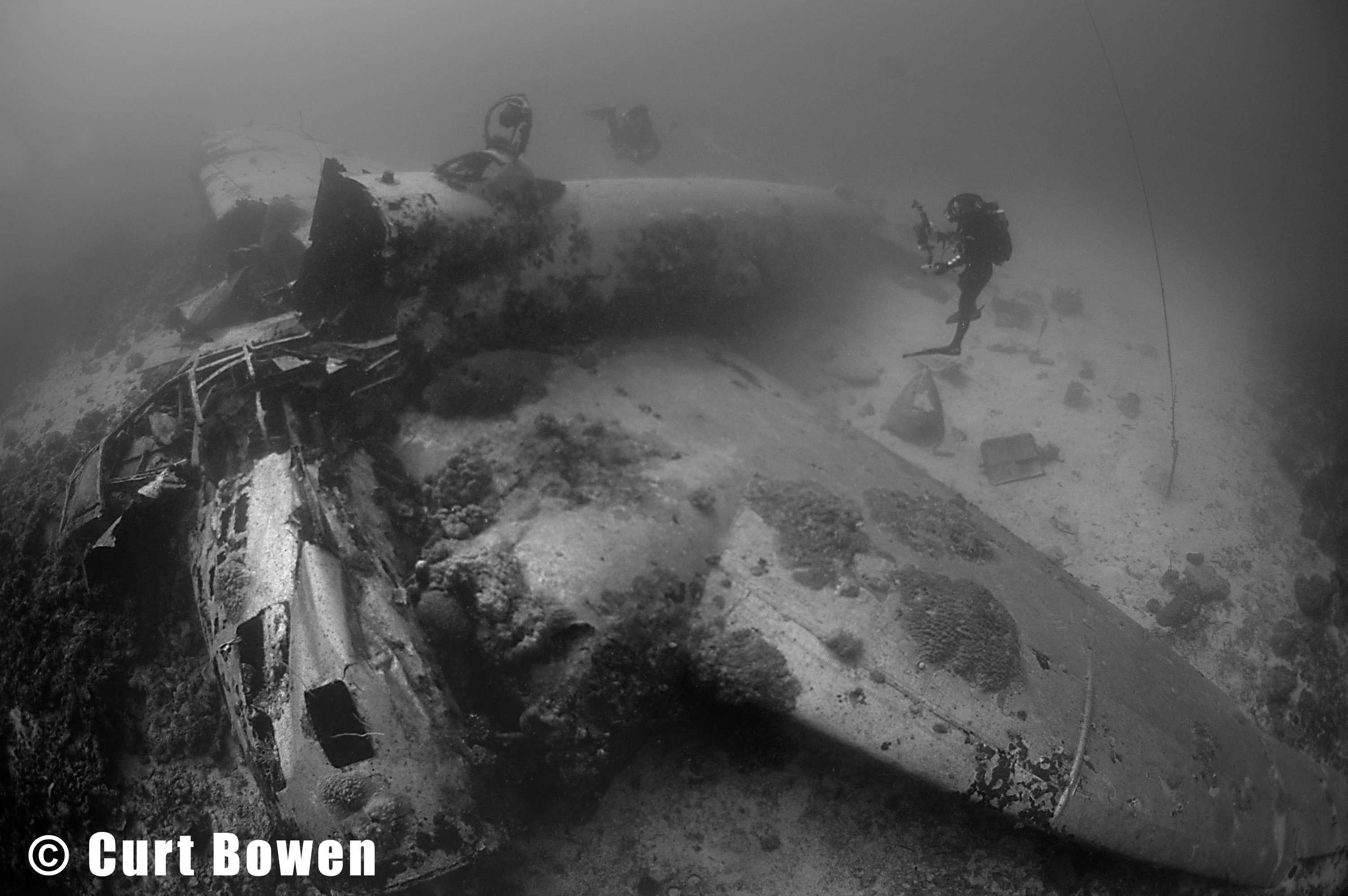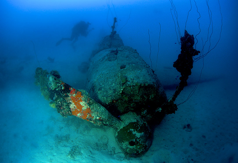 Above: Japanese torpedo bomber “Jill” sits in 120 feet just off Eten Island