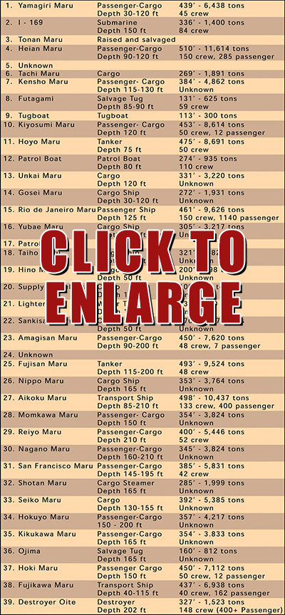 Included in this editorial are some of the interesting and historical wrecks you can visit while in Truk Lagoon. |