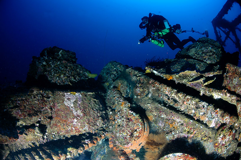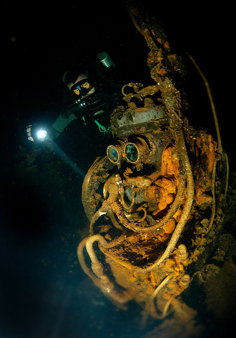 The Momokawa has an interesting engine room but the lower levels can become confusing because of her lying on the port side. A diver must remember that, up is not the way out.