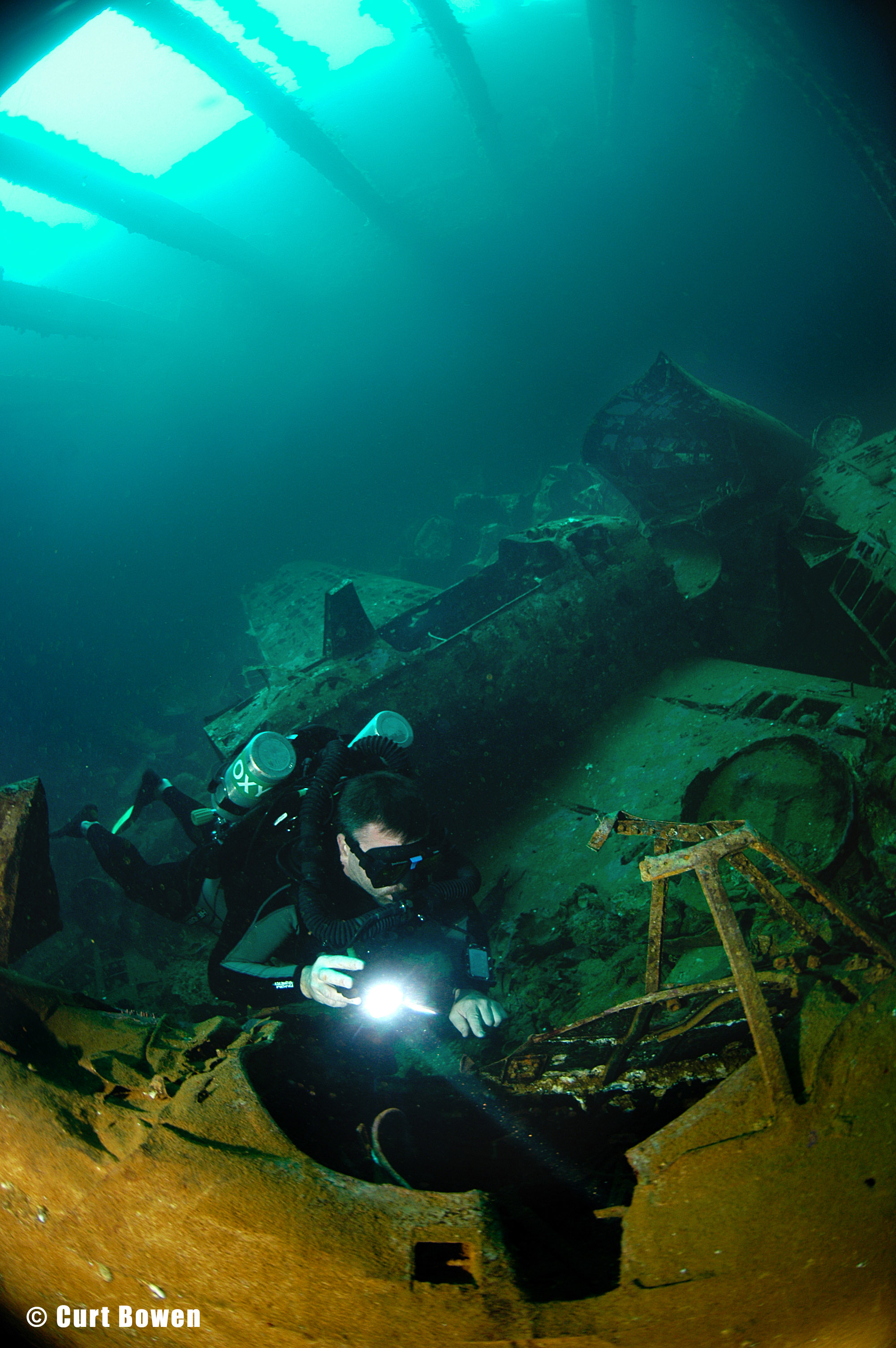 Caution must be taken not to stir up the silt in lower sections of this wreck for it contains large amounts of some type of caustic chemical that can cause skin burns and eye irritation. |