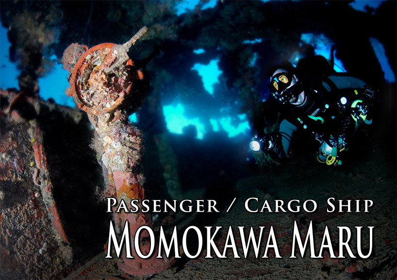 Today the Momokawa Maru can be found lying on her port side in 154 feet of water. Descending onto the bow and into cargo holds number one you will discover piles of aircraft parts, barrels, tires and bombs. All the cargo has shifted towards the port and some has spilled out onto the sea floor.