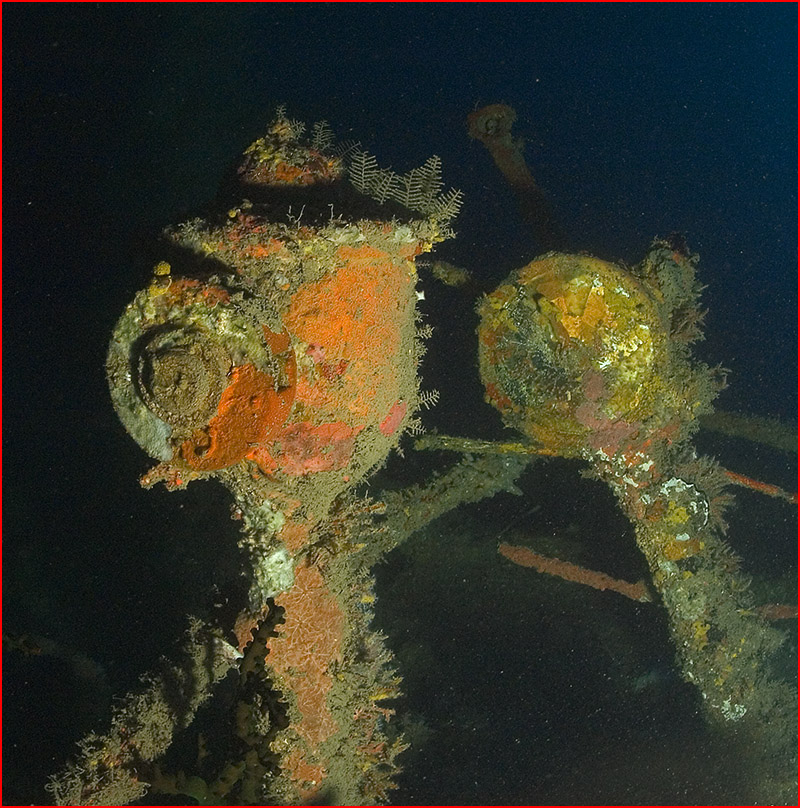 Now I am not the first guy to dive a CCR on the Coolidge, but I am surprised by the lack of images I have seen taken down past the swimming pool. Combining the task loading of a deep dive with underwater photography is not for everyone, and when problems arise, the camera is obviously the first thing to be ignored. But persistence is the name of the game in underwater imaging, so over the course of numerous dives I was able to collect a series of images from the section of the wreck between 55 and 70 meters. |
