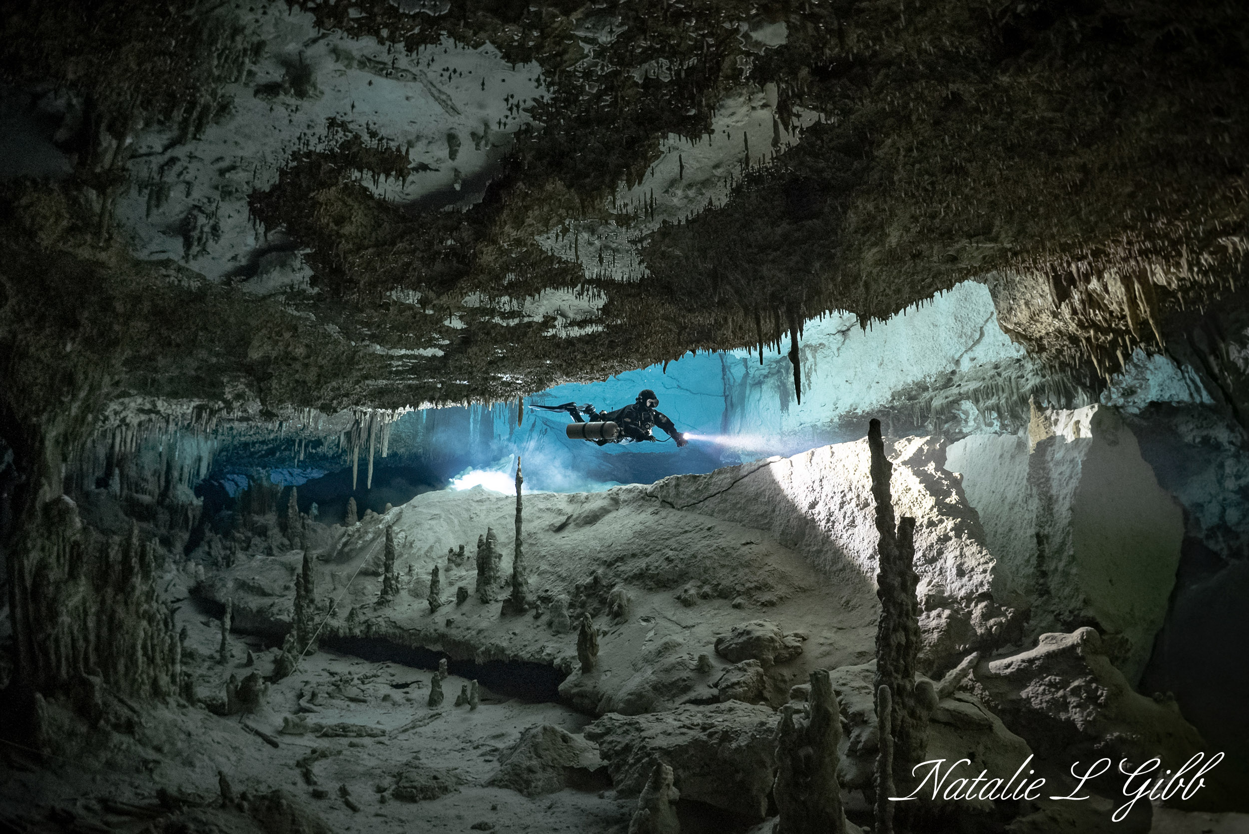As it became accepted, I moved to sidemount. I became an open-water instructor, started guiding cave divers, and slowly moved to become a cave diving instructor. I met my exploration buddy Vincent Rouquette-Cathala in 2008, and together, we've mapped more than 100km of previously unexplored caves. In 2016, we opened Under the Jungle, our cave and technical diving center, and we both became instructor trainers. In 2018, my friend Luca gave me his old Sony A7S camera, and I fell in love with underwater photography and videography. They inducted me into the Woman Diver's Hall of Fame in 2020.