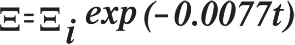 | For surface interval, t, initial CNS clock, Ξ, and for 90 min folding time, the penalty (or residual) CNS clock, Ξ, is simply, |