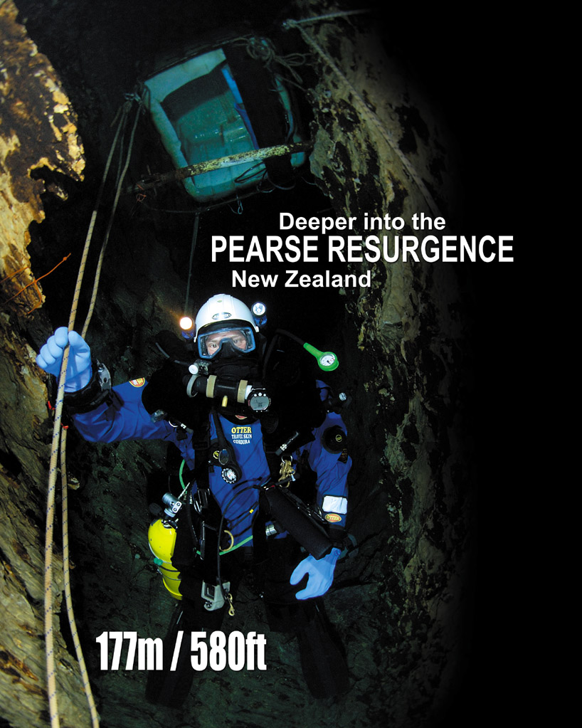 The age of international travel is amazing. Just 25 hours after leaving Adelaide in South Australia, I am in a helicopter touching down in the remote Pearse Valley, a few hundred metres from the resurgence of the Pearse River. Over at the camp, Australia’s Dave Apperley and British cave diver Rick Stanton watch with interest as Craig Howell, John Atkinson, and I unload the chopper and move aside as it departs, leaving us in the glorious wilderness of the Kahurangi National Park, New Zealand.