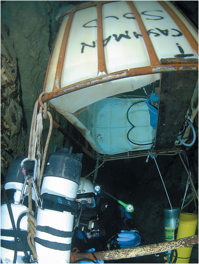 A recent flu had caused John to delay his arrival in the Pearse, but he feels completely recovered now. He dons two 12-litre side-mounts and follows the line into the Nightmare Crescent and down into the shaft to stage the two tanks at 36m. He feels warm and comfortable in the cave, and is starting to admire the beauty of the site, when at 23m he suddenly starts to feel unwell….