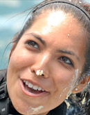 Our second dive was at the same site, and we splashed in for a look at the wall-to-sand transition. There were many fossils in the sand, ranging from coral to other shelled animals. As we descended and the light dimmed, our HID's lit up the surroundings. It was strikingly similar to one of my local dives, a flooded limestone quarry – the walls and craggy rocks gave way to the sloping, sandy bottom. This continued into a wide black plane, where my HID couldn't penetrate more than 20 meters (60 feet). After swimming for a few minutes into the center, I turned and headed back to the wall. This hole would continue on, at least for me, to an unknown depth.
