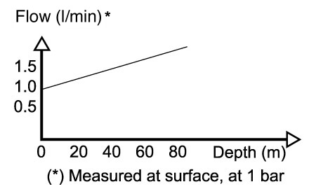 Lowering the IP, to decrease the mass flow to mach the flow to a lower metabolic consumption, will also decrease the maximum operation depth of the unit: Every bar the IP is decreased, the maximum recommended operation depth decreases with 10m.