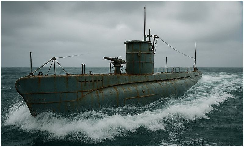 The control room of SM U-48 was a narrow, stifling chamber — a nest of brass valves, voice pipes, and sweating men. The air was thick with the mingled reek of oil, damp wool, and men who had been shut away from fresh air for days. Every bulkhead seemed to press inward. Overhead, the slow, steady thrum of the twin Körting diesels vibrated through the hull, a reminder that the submarine was still on the surface, riding low in the evening swell.