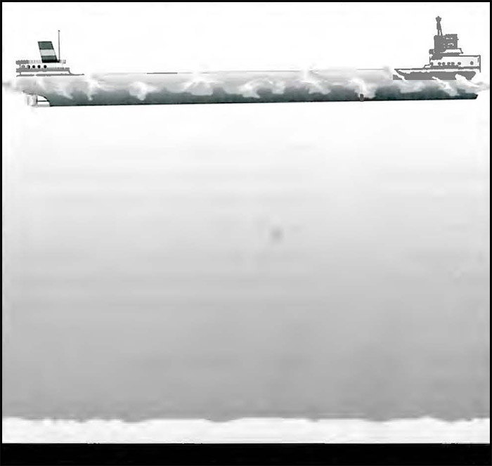 Plunging down at a steep angle the bow was driven ZS feet into Lake Superior's mud bottom until it hit bed rock. Approximately ZOO feet of the ships mid section completely disintegrated from the tremendous Impact.