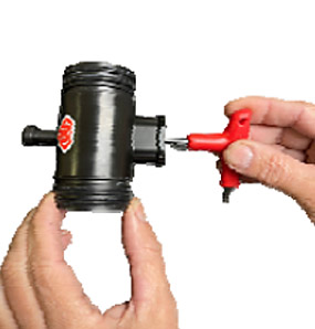 Using an 1/8 inch Allen wrench, reach through the breathing port and remove the screw that holds the lever in place.