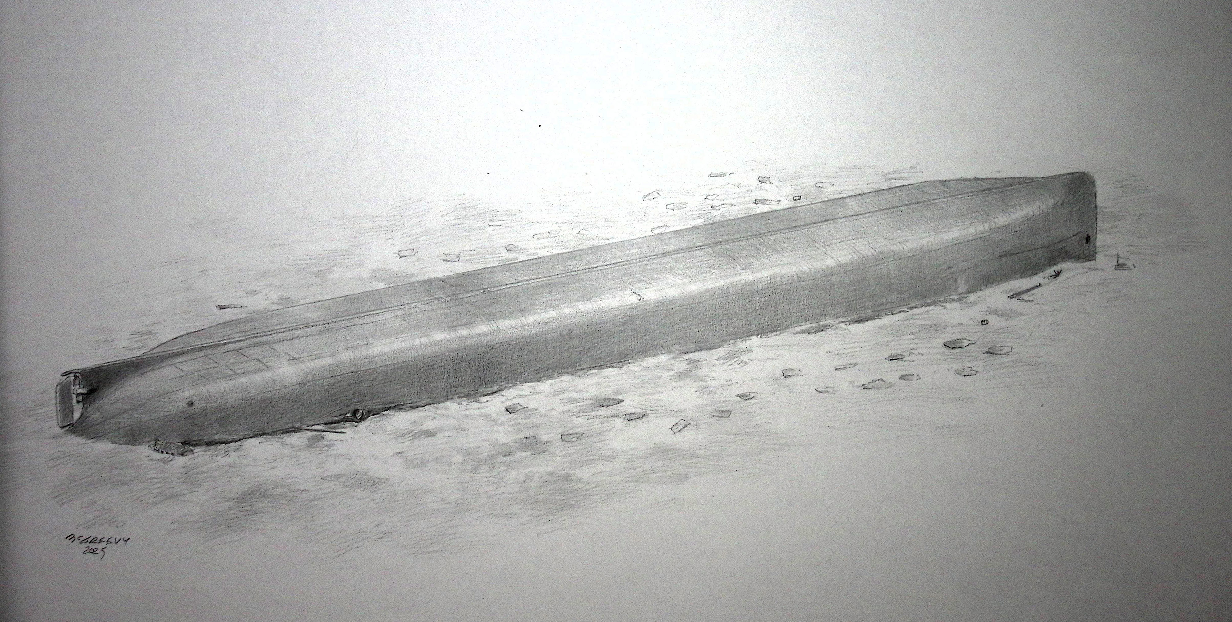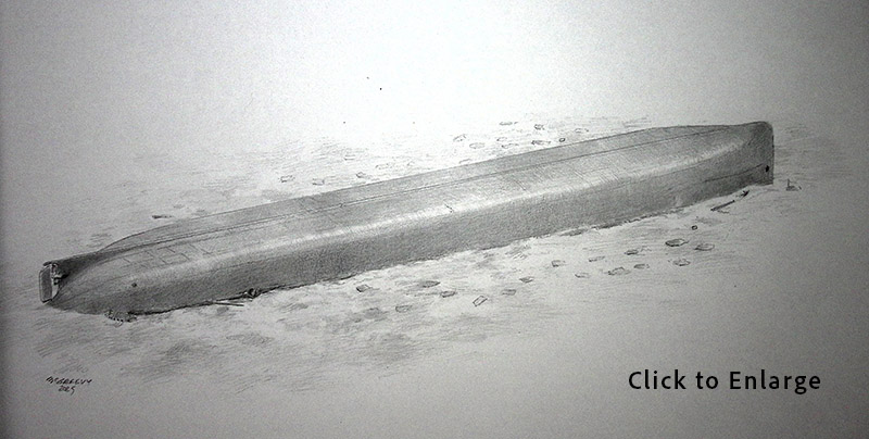 Above: Pencil drawing by Maritime Artist Robert McGreevy of the James Carruthers on the bottom of Lake Huron.
