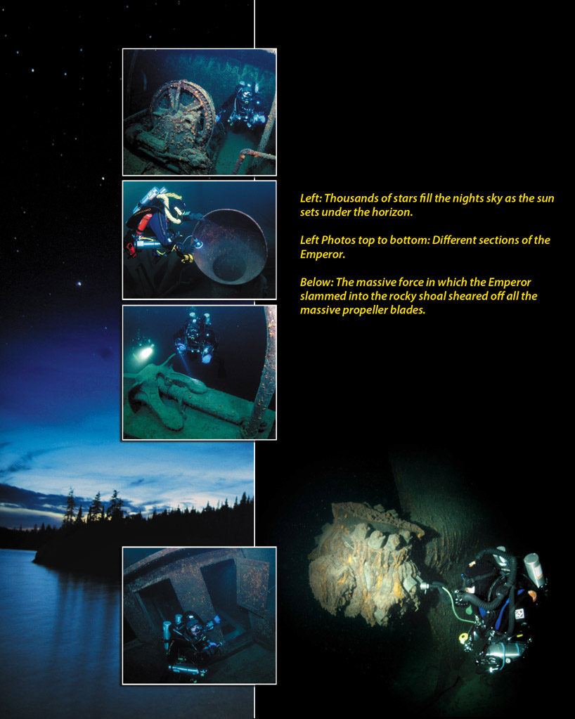 Shortly after 4:15 a.m. on June 4th, the Emperor slammed full speed into Canoe Rocks, just a few hundred yards from the wreck of the Congdon. As the ship began to sink, the captain gave the order to abandon ship.