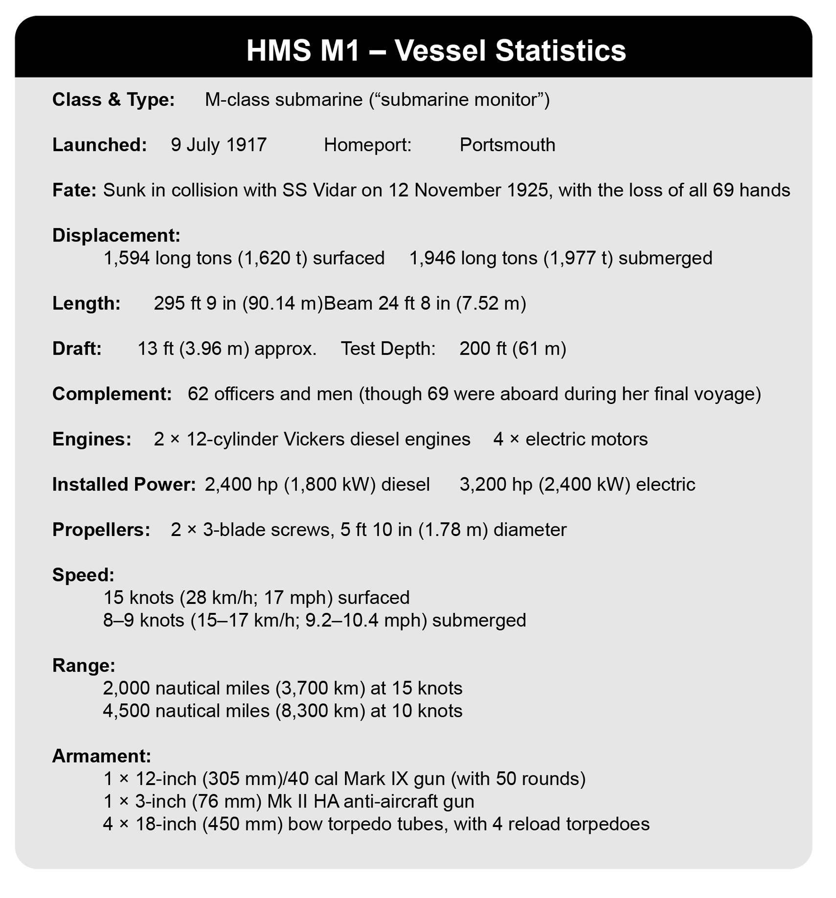 Oblivious, the Vidar ground onward into the storm, her engine beats steady, her bows rising stubbornly against the next wave. But beneath that boiling surface, unseen in the green-black depths, steel had smashed against steel. A Royal Navy submarine — HMS M1 — staggered in the darkness, her hull torn open, her fate sealed in that instant of collision.