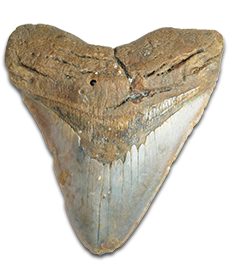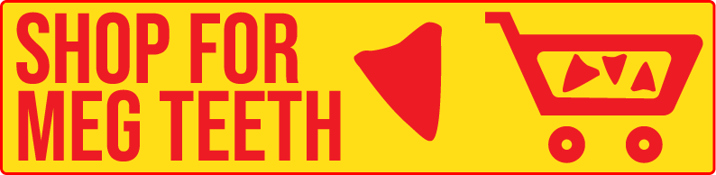 The name “Megalodon” meaning “large tooth,” was given to this creature because of its five rows of jaw-line filled with a staggering 276 terrifyingly large teeth, which are known to reach up to 7 inches in length. Although no jaw bone has ever been discovered, the Megalodon jaw is estimated to measure an approximate 9ft x 11ft. Evidence suggests that a Meg’s bite force would be close to 40,000 pounds per square inch. Often compare to the Tyrannosaurus Rex (T-Rex), which had an estimated bite force of over 12,000 pounds per square inch. Studies that have reconstructed the shark’s bite force suggest that it may have been one of the most powerful predators to have ever existed. Sharks will naturally lose teeth while feeding and regenerate them daily. A Meg has 276 teeth and could lose over 30,000 to 40,000 teeth in its lifetime.