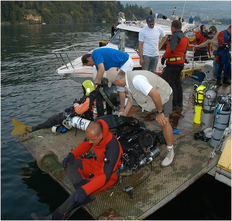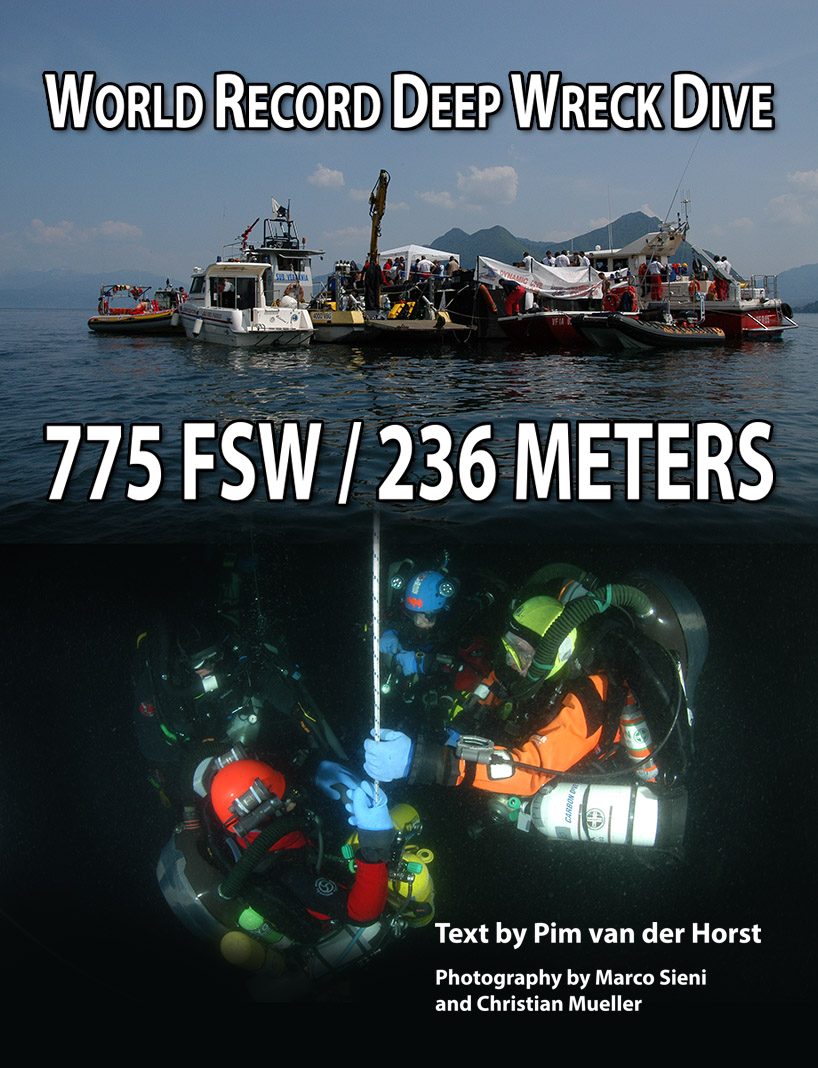 World record wreck dive made on the Milano wreck on 236 mtrs in Lago Maggiore (Italy) on May 10th 2008 by Mario Marconi, Alessandro Scuotto and Pim van der Horst during the Dynamic Dive Exhibition 2008 (on Ouroboros CCR)