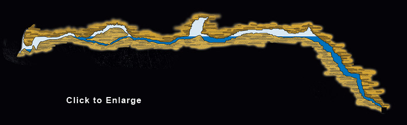 I turned to exit to find that the restriction I had kicked through had slumped closed behind me. I had to pull the gravel around the line towards me in arm fulls to dig my way through the restriction, which reduced the visibility to zero. After passing the collapsed restriction, I got back into clearer water and began my return swim, which required 60 minutes of deco excluding deep stops.